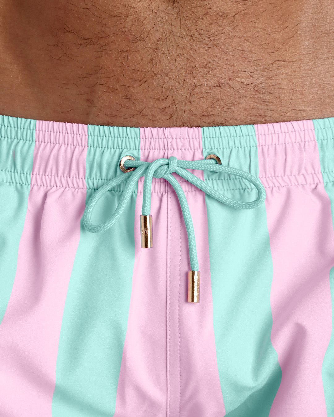 These are BANG!’s SHOWIEST beach shorts ever. Ready to show off! Show those legs. Show those quads. Show them all you got! We cut these beach trunks as short as we could. We even went 1” shorter than our Beach Shorts in the outer seam to take these beachwear bad boys to a new show-stopping level. Served just like vintage rugby or volleyball shorts, but with BANG!’s signature shape enhancing tweaks. Meet your new partner in crime to hit the beach or pool in a perfect fitting swimsuit ready to put on a show. Get ready for showtime in BANG! Show Shorts.