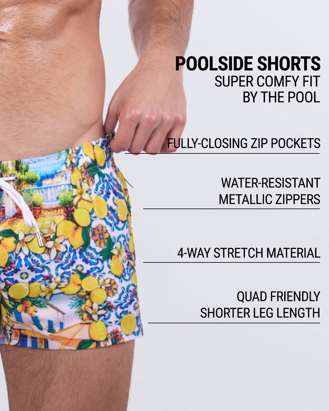But these shorts have fully closeable pockets to keep all your items secure, with metallic zippers in shiny silver. The back pocket is also secured with another metallic zipper. You can think of these as vintage rugby or volleyball shorts but with an upgrade to step up your poolside game.