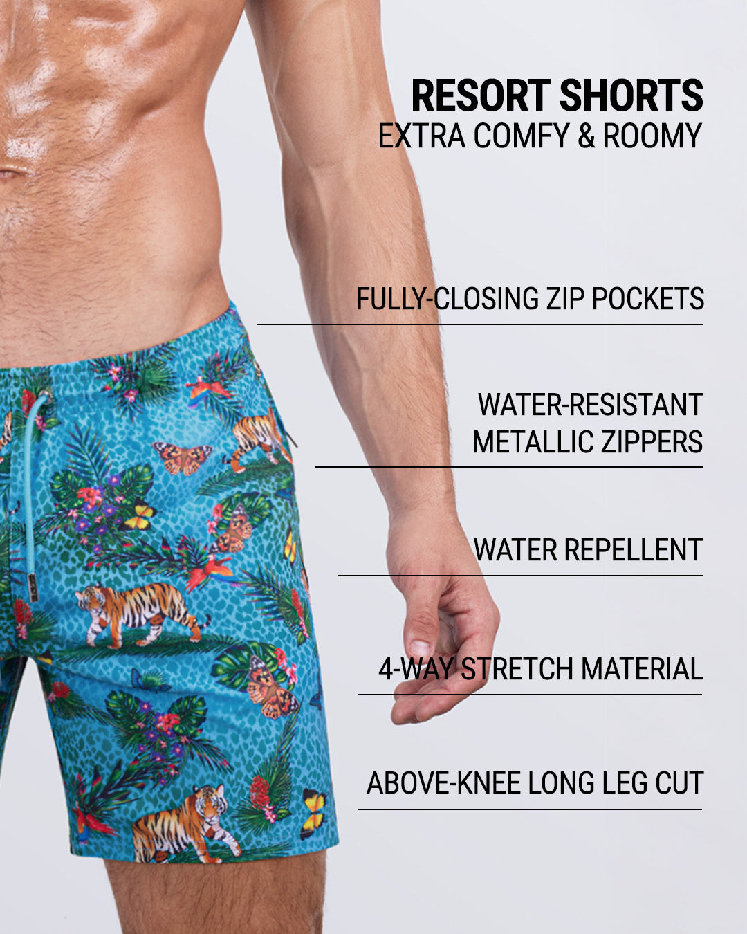 Leg height for these Resort Shorts: Mid-Length