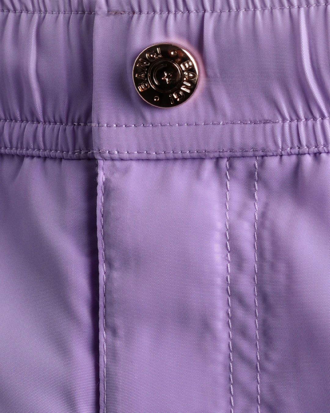 - Elastic waistband with custom logo snap-button, matching engraved eyelets, Velcro fly, and internal drawstring with signature engraved metallic tips