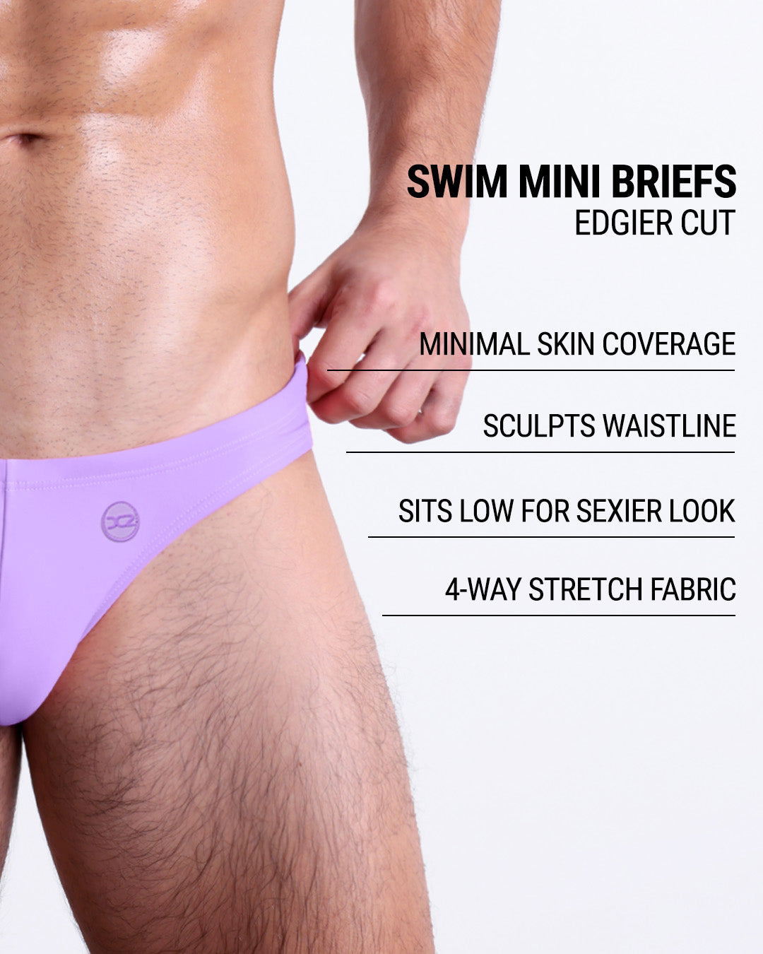 DC2® Swim Mini-Briefs feature an edgier cut that shows more skin with a perfect fit. A 'minimal' coverage suit featuring a combo of low-waist cut, a high-leg opening, low-rise seat, and snug fit, to sculpt a man’s waistline to the extreme. A bikini-style bathing suit for men who dare or those who just feel 100% comfortable in their own skin.