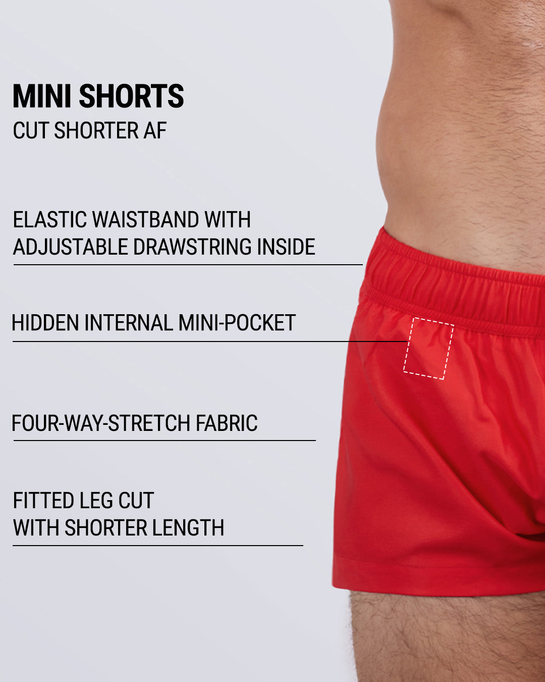 The name says it all: DC2® MINI SHORTS are cut shorter AF, so legs of all kinds can get all the applause. These bad boys are practically the “shorts-equivalent” of our acclaimed Swim Mini-Briefs, cut to a “minimal” edge. A slightly shorter leg length than in our Show Shorts, combined with the signature four-way-stretch top-grade fabric of all our Beach Shorts line, become a match-made-in-heaven for unbeatable poolside and beachside eye-magnet domination.
